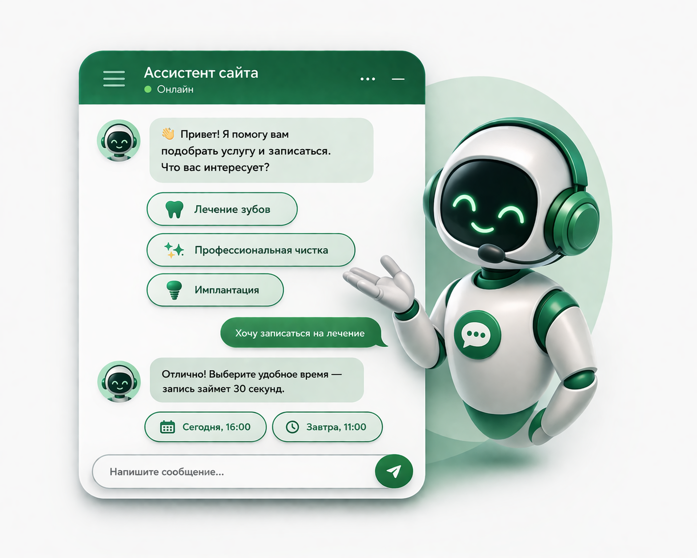 Установим умного ассистента, который общается с клиентами 24/7 и превращает посетителей в заявки без менеджера.